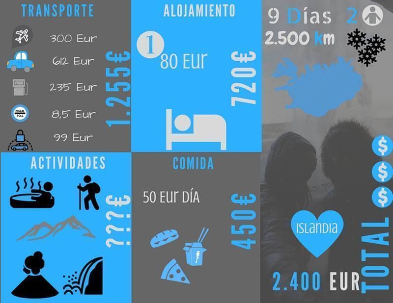 En una semana en Islandia, el presupuesto para dos personas puede ser el siguiente: