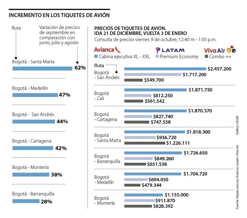 - Punto de partida: El precio de los boletos de avión desde el punto de partida hasta Colombia variará en función de la distancia recorrida.